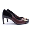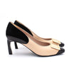 Grace Nude/Black Patent Gold Buckle Square Toe Pump